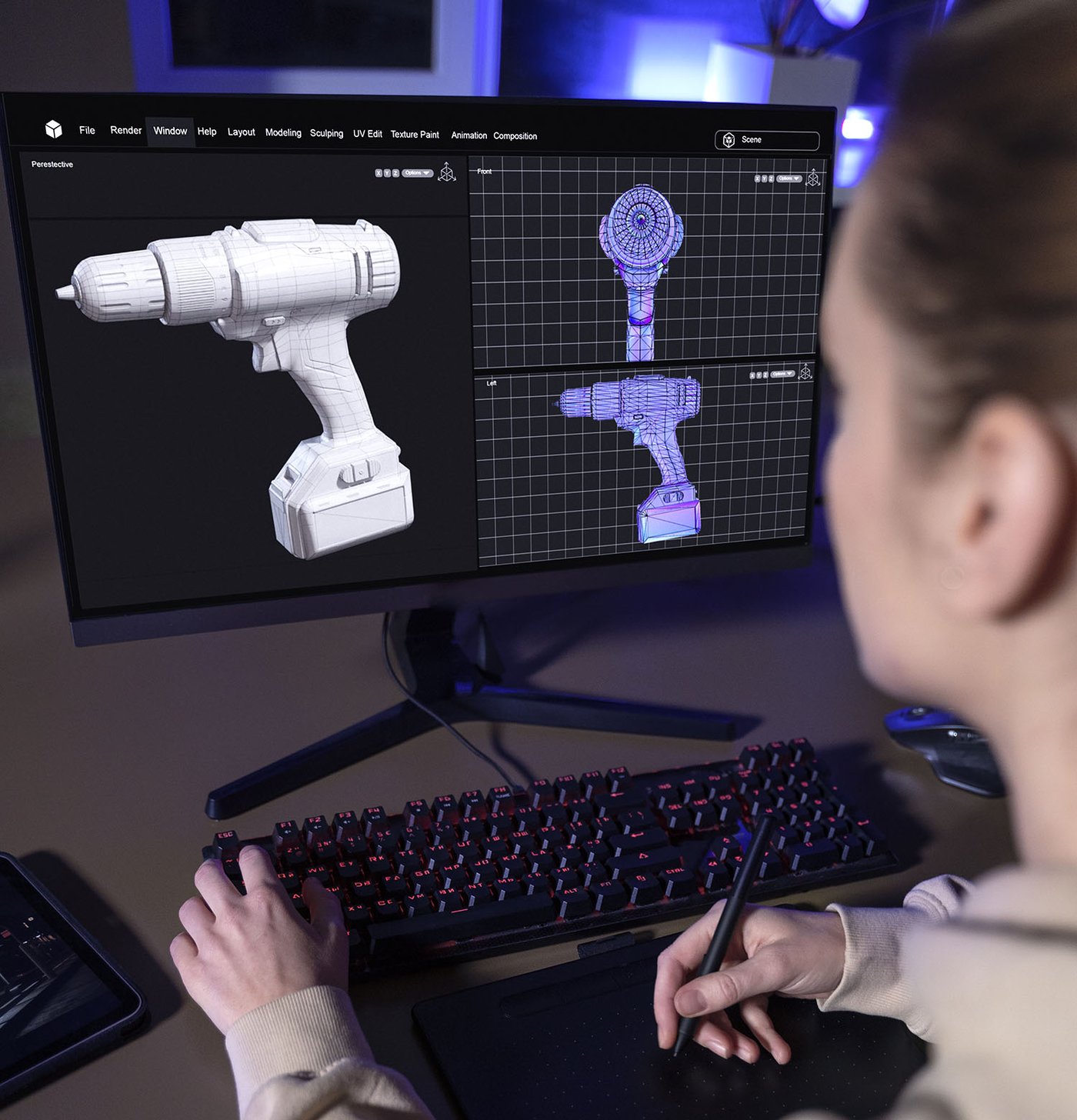 La progettazione assistita da computer (CAD) si basa sull'uso di software per creare modelli 3D virtuali. DAM 3D offre la possibilità di progettare nuovi componenti su misura oppure ottimizzare quelli già esistenti finalizzati alla stampa 3D. Effettuare una progettazione adeguata prima della stampa 3D è vantaggioso perché permette di ridurre i costi, migliorare la funzionalità del componente, creare geometrie complesse, diminuire il peso e personalizzare il prodotto in base a esigenze specifiche.